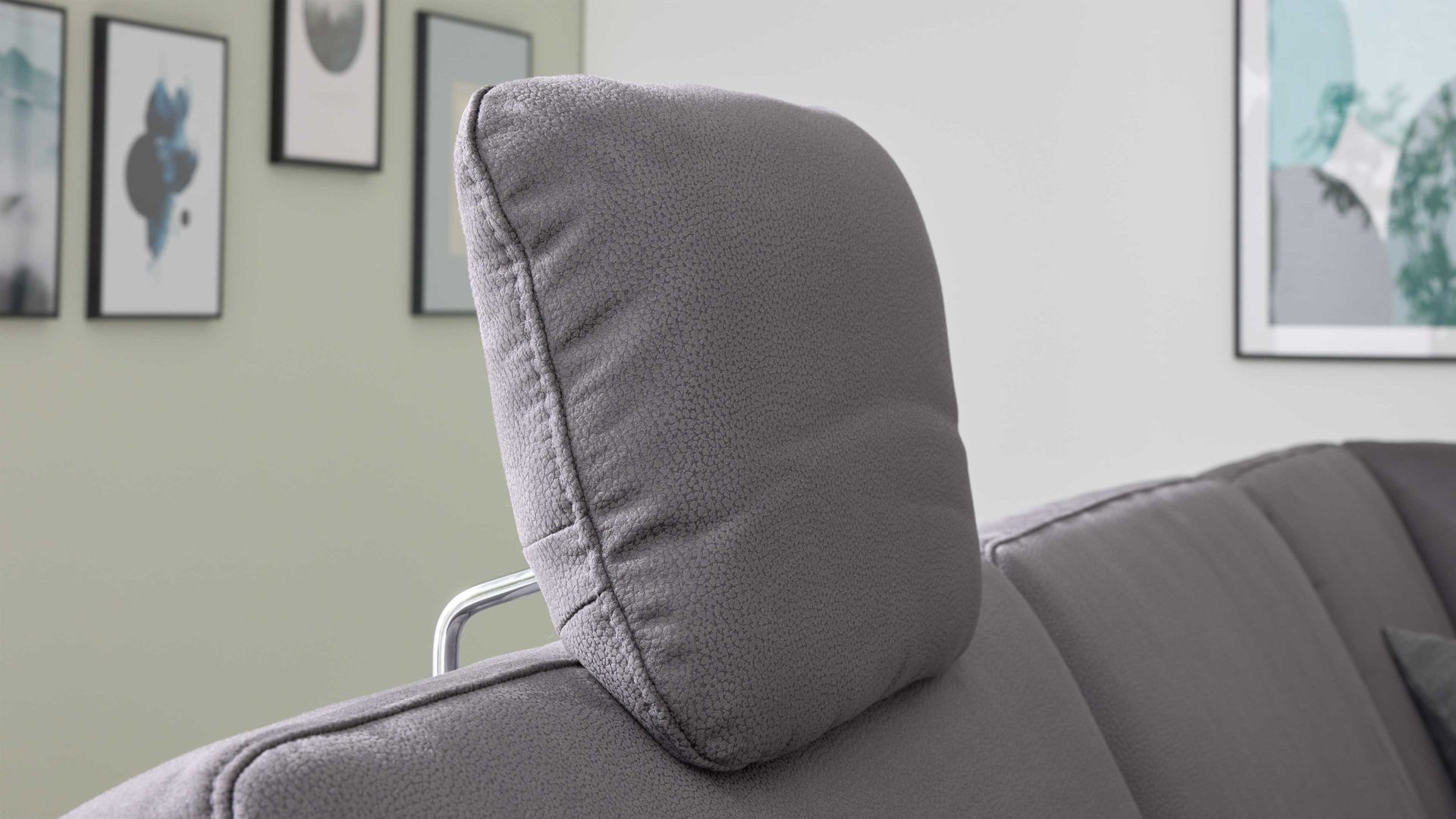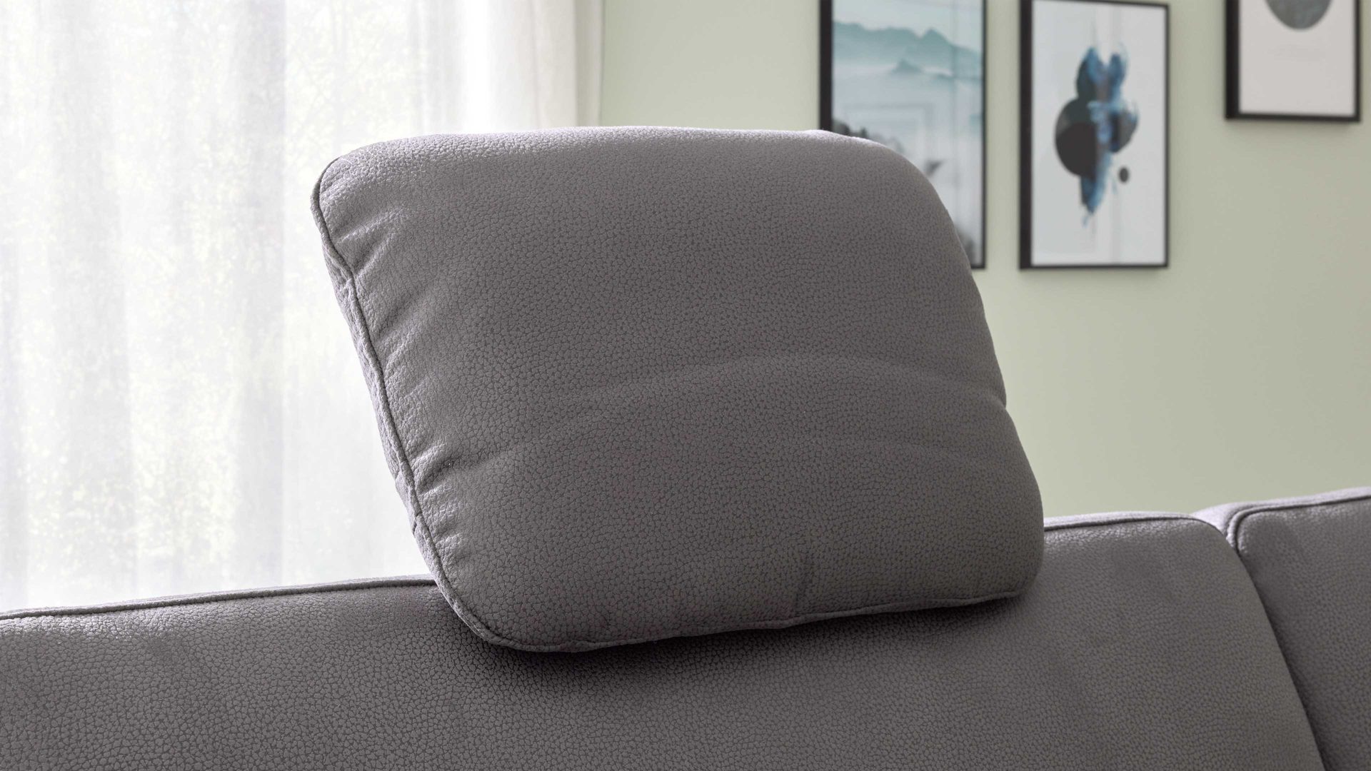 Die Kopfstütze CKS ist ein Mehrpreis-Zubehör für die Sofas mit geprägtem stahlfarbenem Mikrofaserbezug aus dem Modulmaster Programm MM-ZE1059.