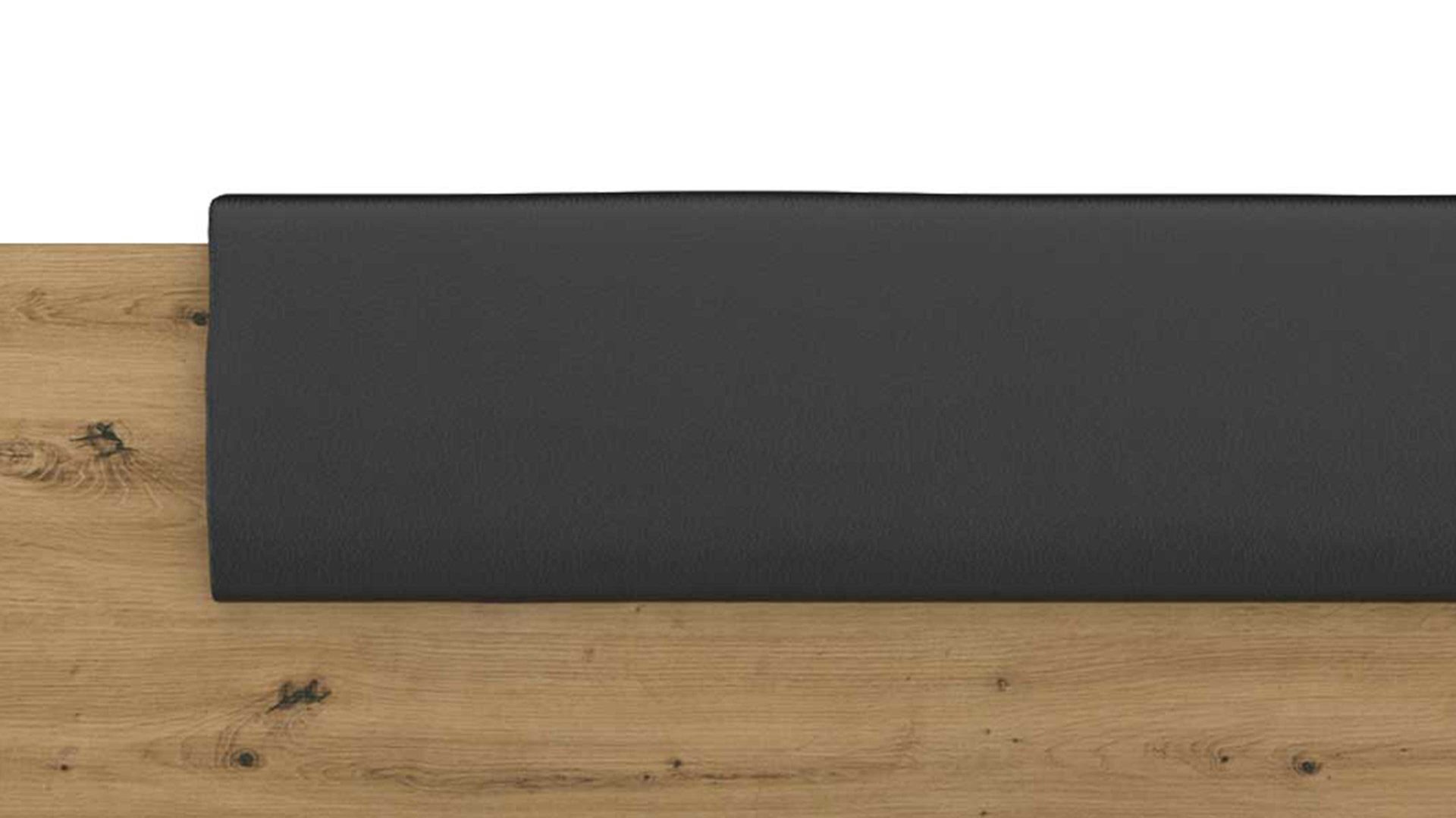 Entdecken Sie das rauch BLUE Miro Bettgestell - das perfekte Doppelbettgestell für einen erholsamen Schlaf und stilvolles Ambiente in Ihrem Schlafzimmer. Es besticht durch seine grau-metallicfarbenen Kunststoffoberflächen kombiniert mit Eiche Artisan Nachbildung und schwarzem Kopfteileinsatz in Lederoptik. Der schwarze Sockel verleiht dem Bettgestell eine moderne Note und sorgt