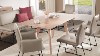 vier Funktions-Esstische in Furnier oder Holz-Nachbildung lieferbar