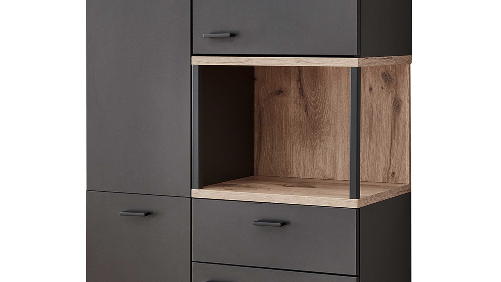 drei Türen, eine Schulade und ein offenes Fach