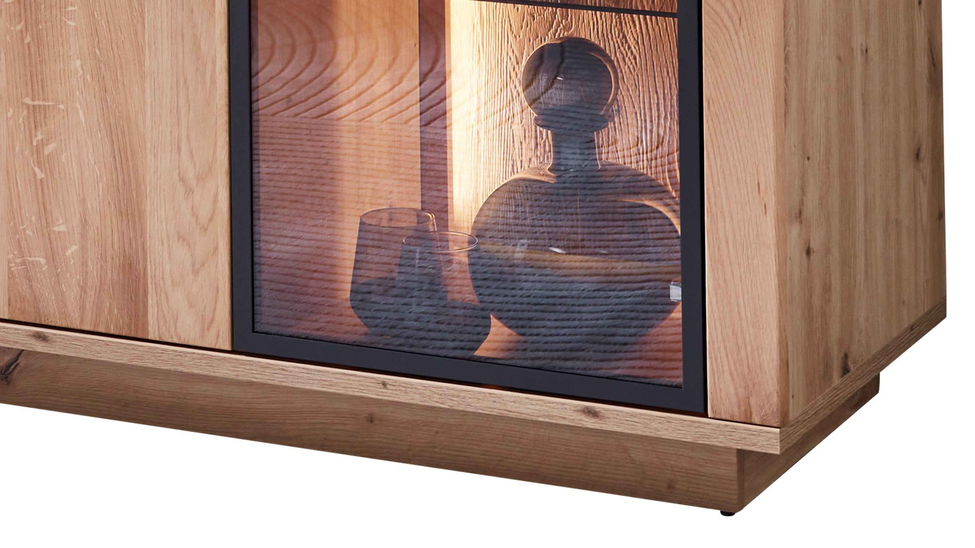 | Farbhinweis: | Eiche Artisan Schwarzgrau sandgestrahltes Holz Klarglas | |