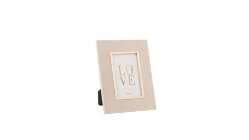 der Holzrahmen ist auf der Vorderseite mit beigem, auf der Rückseite mit schwarzem Velours bezogen