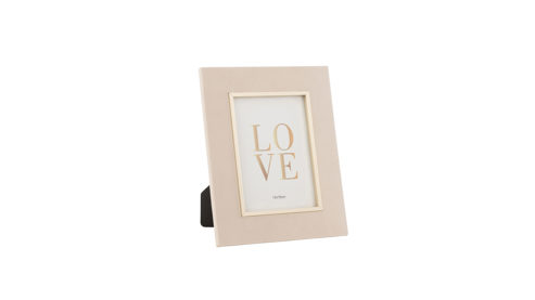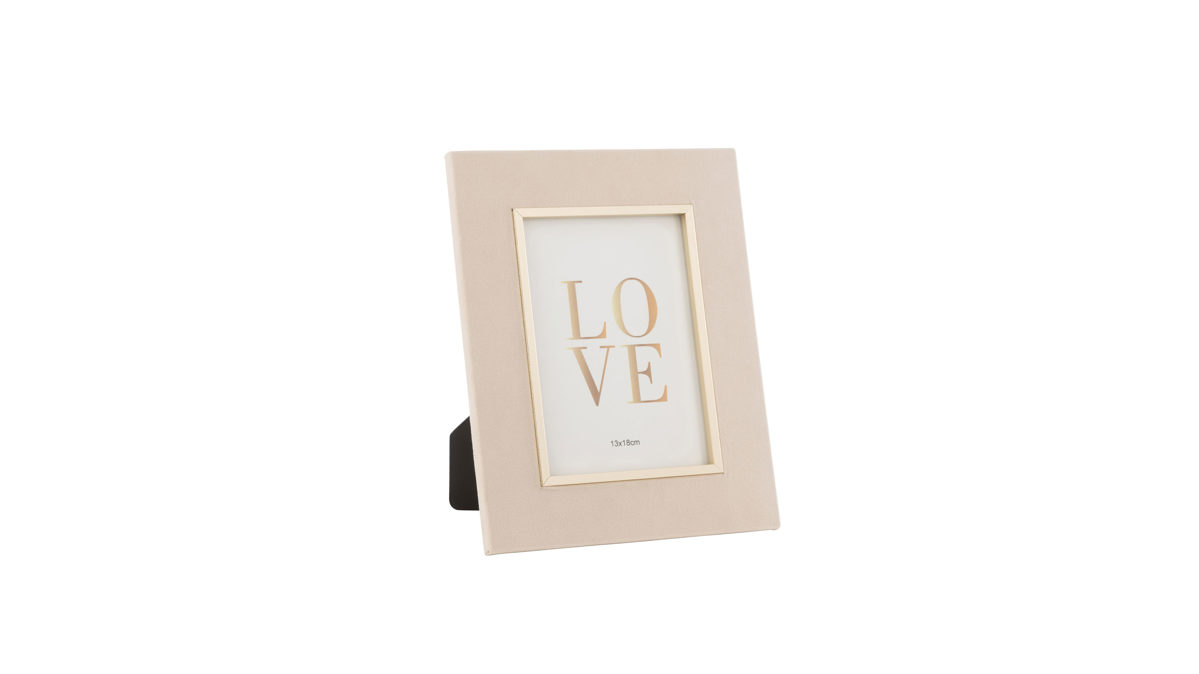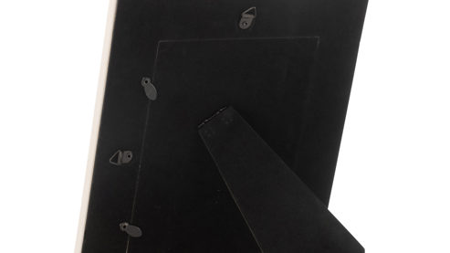der Holzrahmen ist auf der Vorderseite mit beigem, auf der Rückseite mit schwarzem Velours bezogen