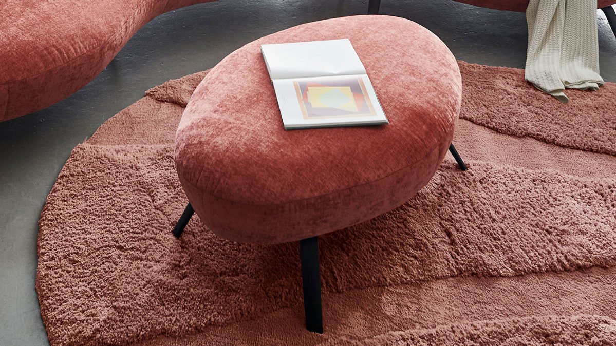 kupferfarbenes Chenille-Flachgewebe, kombiniert mit matt schwarzen Metallfüßen
