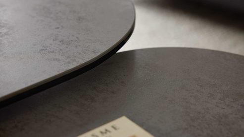 Die Platten bestehen aus ca. 3 mm Keramik, die auf eine ca. 6 mm starke Glasplatte geklebt ist. Diese Kombination sorgt für eine besonders stabile, langlebige und pflegeleichte Oberfläche. Gleichzeitig überzeugt der Keramikplattentisch mit einer hochwertigen Haptik und moderner Optik.