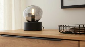 • Die Abbildung zeigt ein Wohnbeispiel, welches auch Dekoration sowie separat erhältliches Zubehör enthält. Im Lieferumfang enthalten ist eine Tischlampe ohne Leuchtmittel.