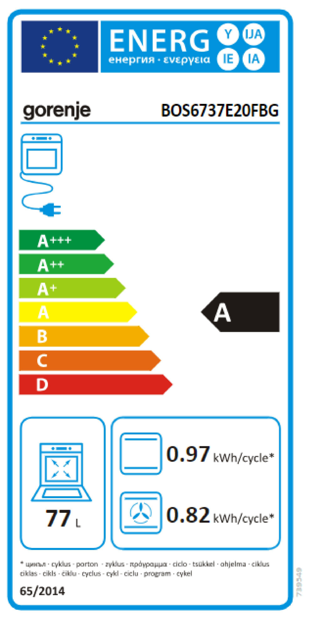 Energieeffizienz Backofen: A++ A+++ D A++