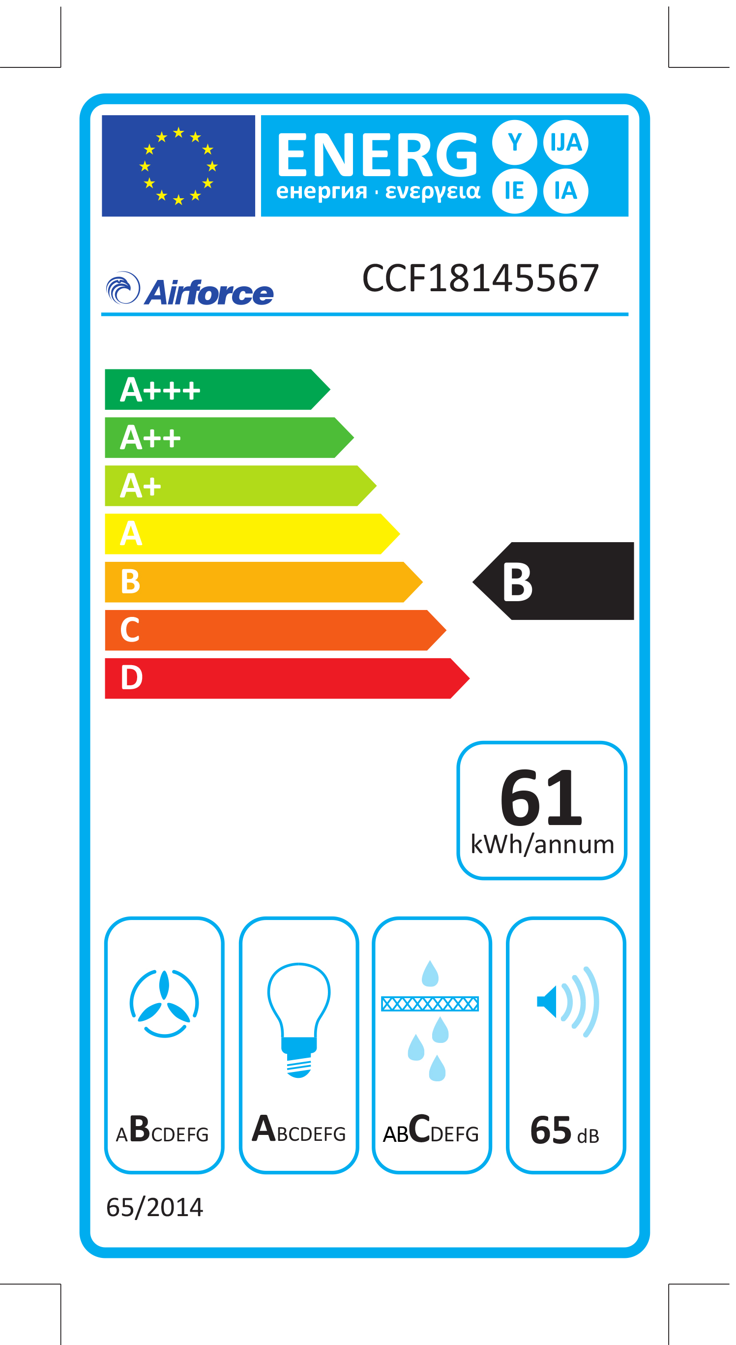 Energieeffizienz Flachschirmhaube: B A+++ D B