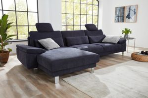 • Die Abbildung zeigt ein Wohnbeispiel, welches auch Dekoration sowie separat erhältliches Zubehör enthält. Im Lieferumfang enthalten ist ein Ecksofa mit Kopfteilverstellungen.